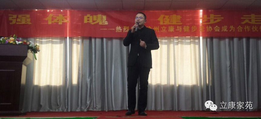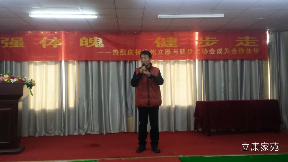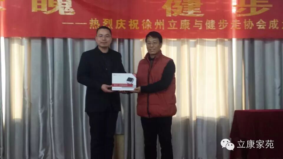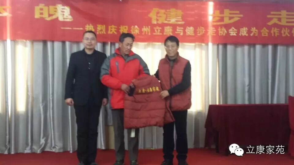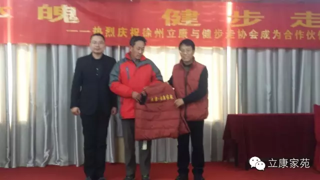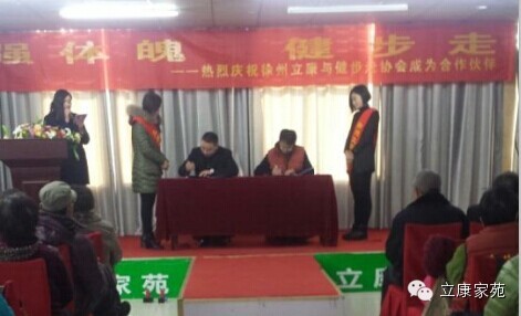據悉,本次簽約儀式共有四項議程——領導講話、走進立康、簽署儀式及健康講座。徐州立康電子科技有限公司向健步走協會贊助了健步走服裝、旗幟以及試用健康理療機等。